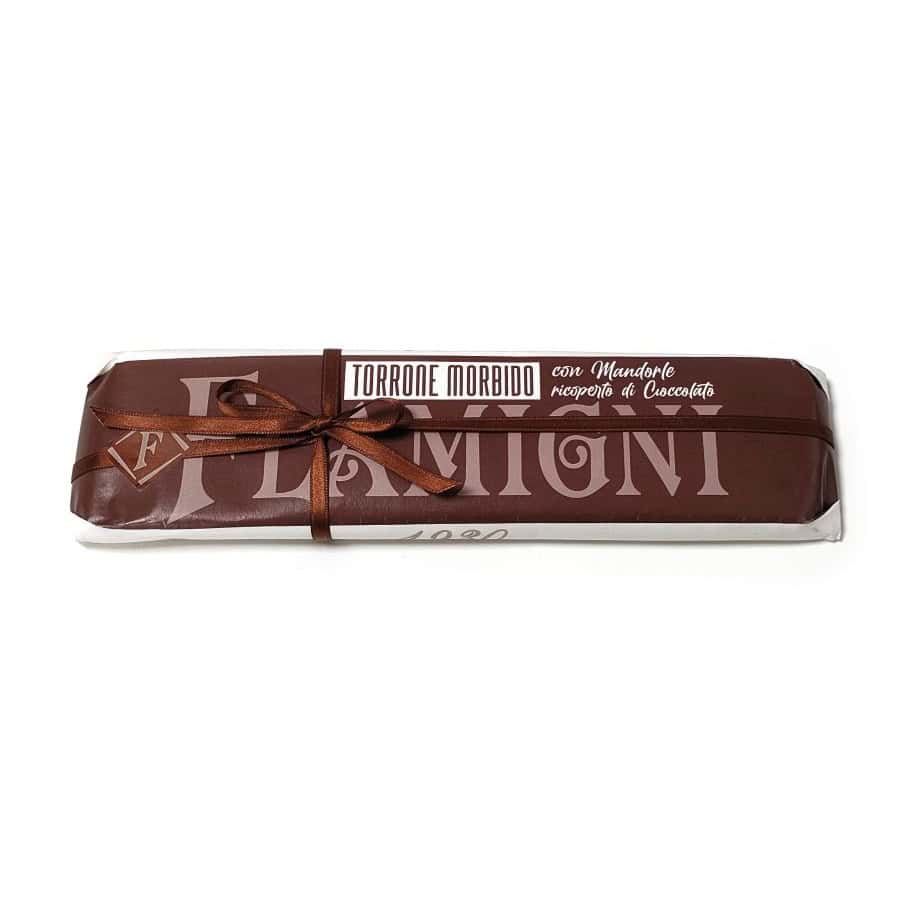 Flamigni Chocolate Nougat is a work of confectionery art that combines the Italian tradition of nougat with the irresistible temptation of chocolate. The nougat heart is a symphony of flavours and textures, with golden honey, toasted almonds and natural aromas blending into a soft, fragrant texture. This is beautifully balanced by the dark chocolate coating, which adds a luxurious note and a touch of intense sweetness.