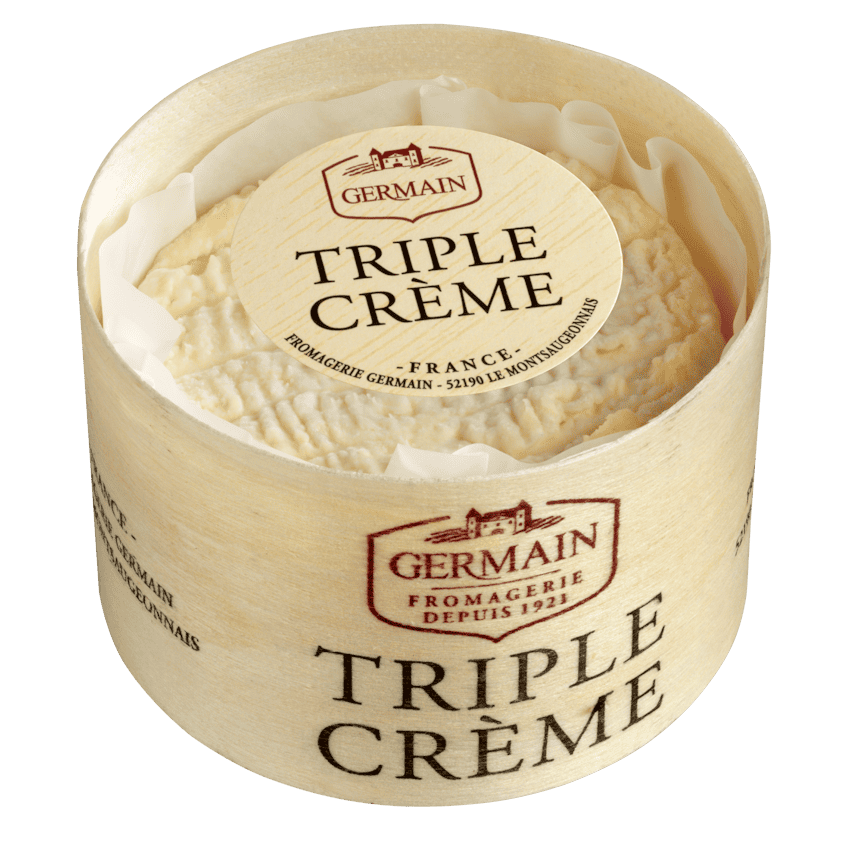 The Germain Triple Crème is the most decadent of all cheeses. The cheese was created by the renowned Fromagerie Germain Company, based in Chalancey, France. It is a ripened cow’s cheese in which cream was added to make it even creamier. It has a smooth butter-like texture and creamy flavour. As the rind is made with geotrichum, the cheese is less bitter and more velvety. This cheese is ideal for a cheese plate.