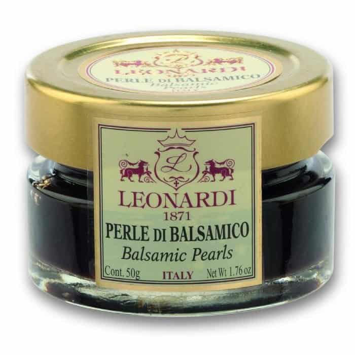 From an exclusive Leonardi Recipe, the Balsamic Pearls are small spheres with a liquid sweet-and-sour heart containing the best Balsamic condiments Leonardi. When eaten, they provide a surprising and pleasant explosion of taste besides transforming any dish in a true spectacle.