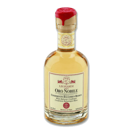 It is produced using white grape must, acetified and aged in oak barrels to get its typical amber colour. Its most striking feature is that it does not alter the colour of dishes but it adds a fruity and mildly acid aroma and flavour (excellent to replace wine vinegar).