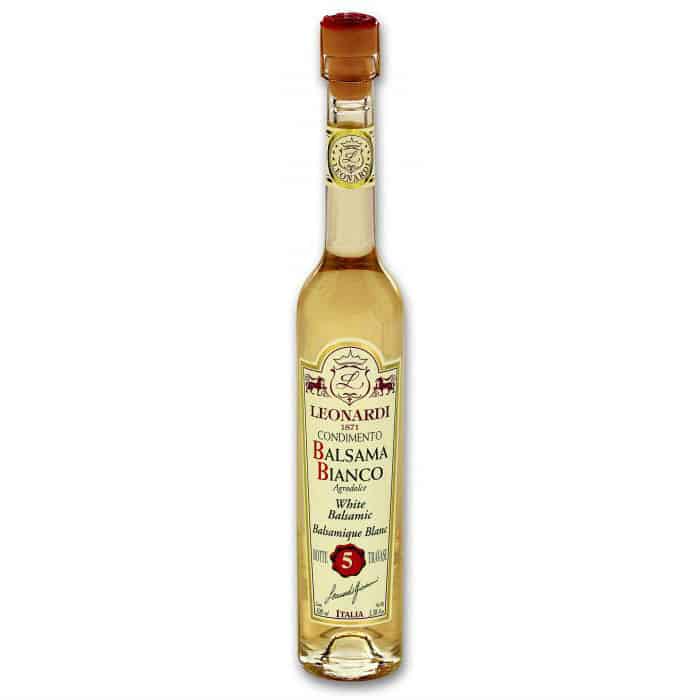 It is produced using white grape must, which is acetified and matured in oak barrels. It has a typical gold colour which does not alter the colour of dishes. It adds a fruity and mildly acid aroma and flavour (excellent instead of wine vinegar). Especially recommended on fish and seafood.