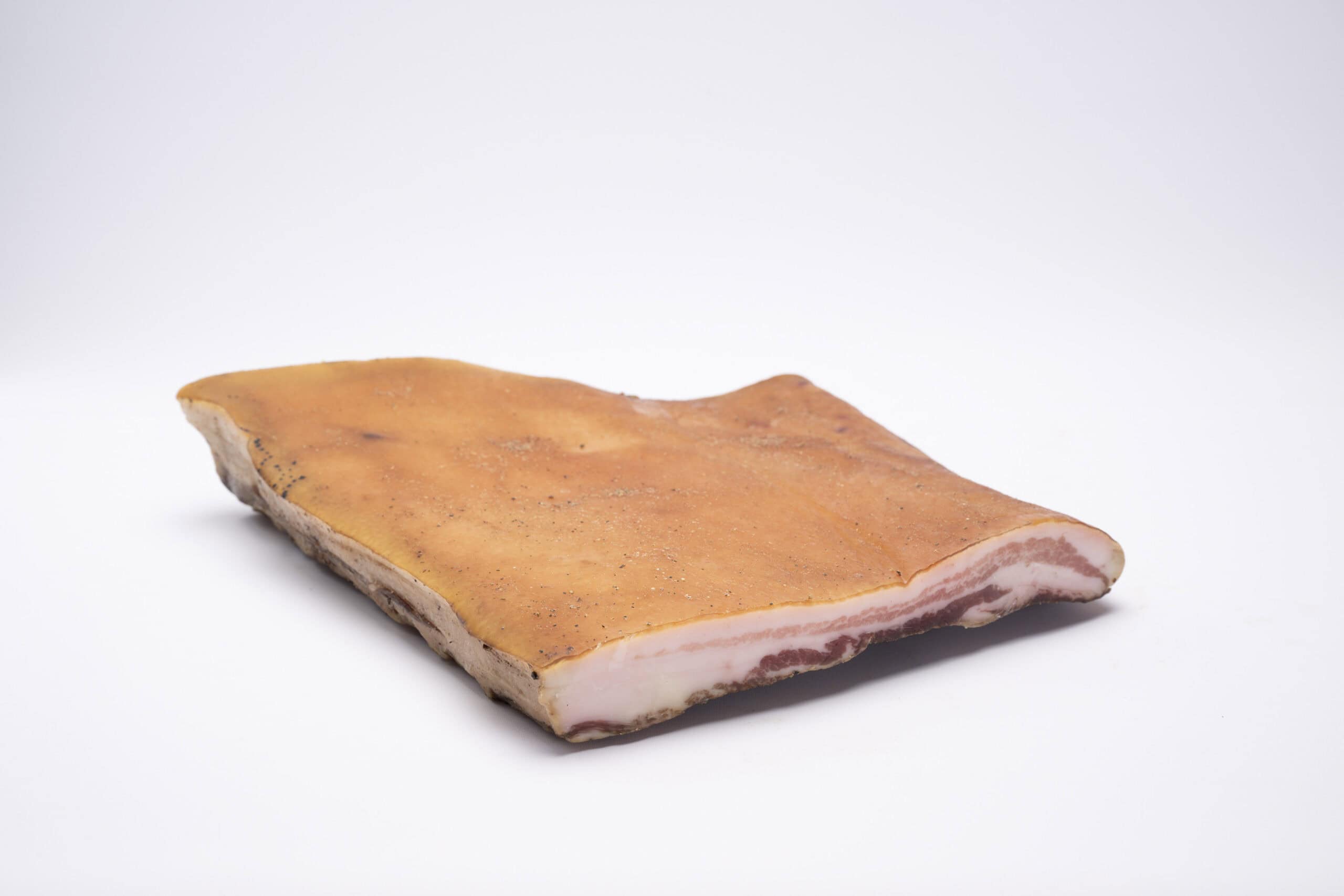 Flat Pancetta refers to pork belly that has been salted, cured and dried. This process takes about 3 months. Very popular to have with pasta.