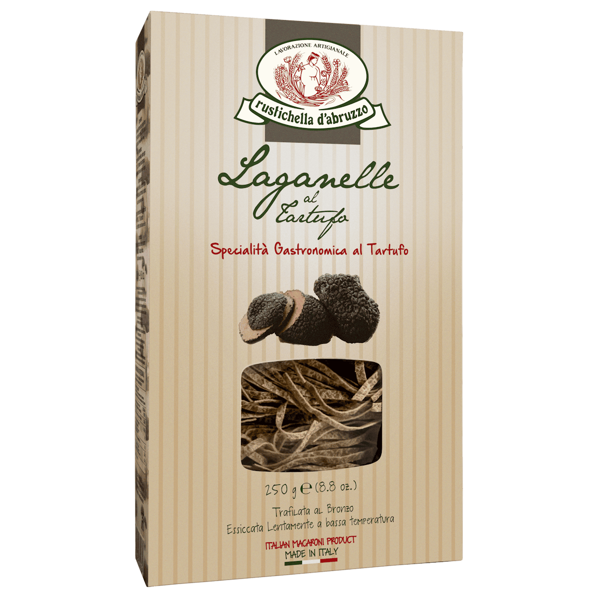 The intense scent of black truffle blends with the enveloping one of fresh eggs and durum wheat semolina to give you an unforgettable culinary experience. Try the Truffle Laganelle from Rustichella d’Abruzzo in the classic recipe with porcini mushrooms, walnuts and for truffle lovers, fragrant flakes of black truffle from Alba.