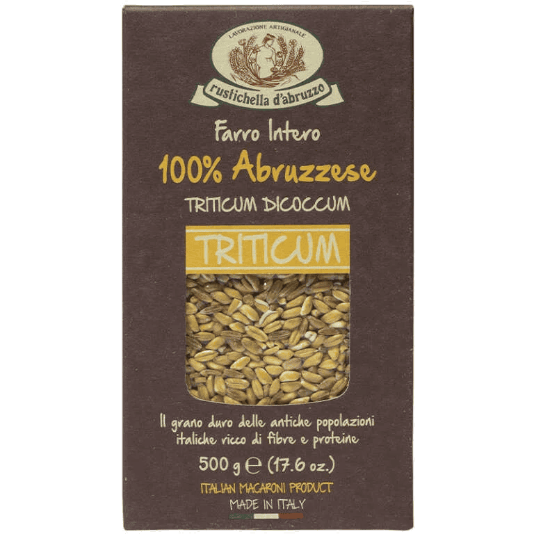 Controlled from sowing to harvesting, our TRITICUM DICOCCUM spelled fields belong to a controlled supply chain, which began as early as 2004 with the PrimoGrano project when the possibility of tracing crops from sowing was still beginning to be discussed in Abruzzo. Whole Farro is ideal for summer salads based on cherry tomatoes, capers, flakes of Parmesan, fragrant basil, buffalo morsels and monocultivar oil Evo.