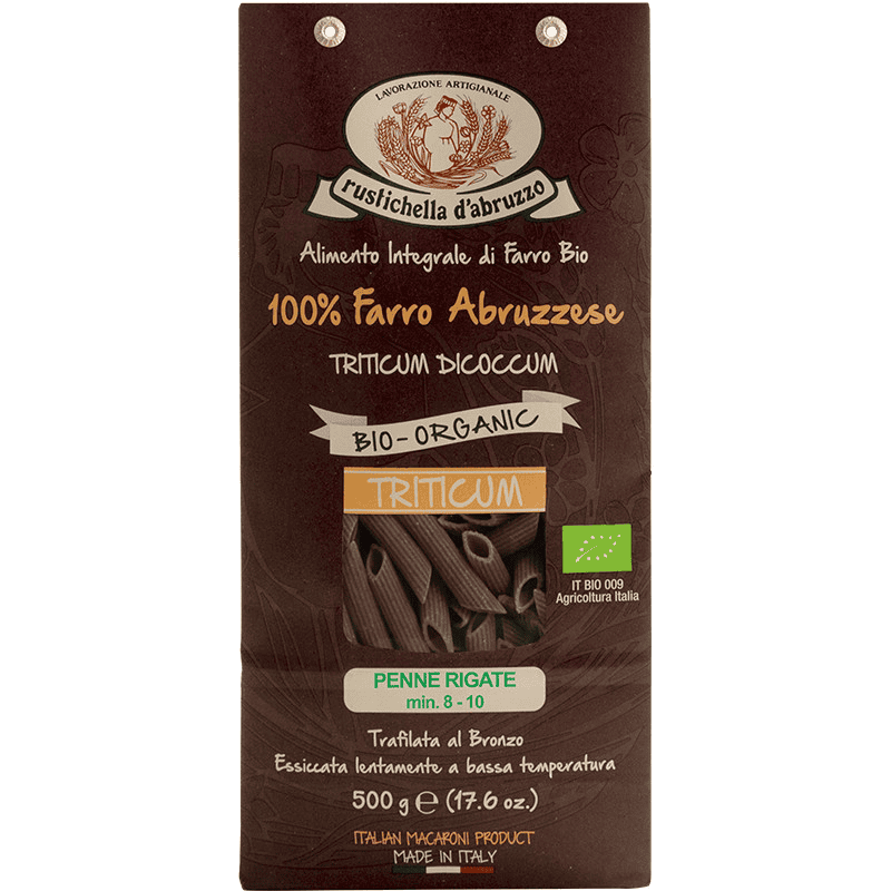 Penne rigate, loved throughout the peninsula and characterized by the typical oblique “nib” cut, are proverbial for their versatility in the kitchen thanks to their design and the presence on the surface of deep grooves, which allow to hold better, internally and externally , any seasoning. Produced with 100% Abruzzo wholemeal spelled flour and with an artisanal production process, Rustichella d’Abruzzo suggests combining them with all those vegetable-based condiments, accompanied by organic Extra Virgin Olive Oil, for lovers of well-being.