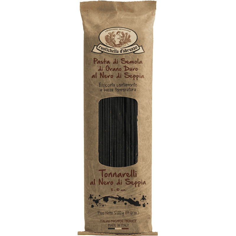 Artisan pasta format flavored with Squid Ink, similar to Spaghetti but with a larger diameter, it goes well with both fish-based sauces with rocket and cherry tomatoes, and in the “seas and mountains” version with prawns and bacon. Also perfectly in tune with an organic Tomato and Basil sauce.