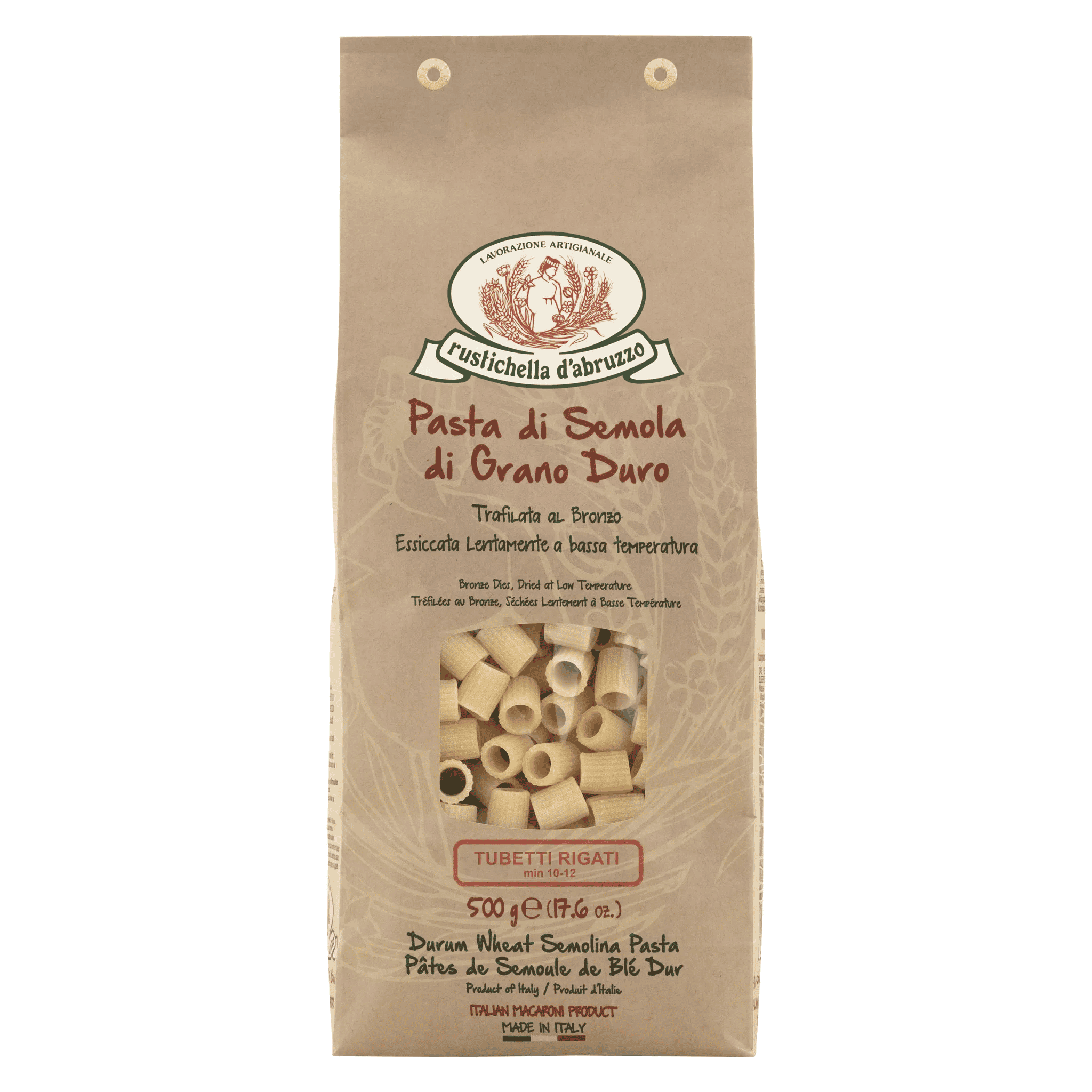With a semi-cylindrical shape, this short pasta format is mainly indicated for legume-based soups, vegetable minestrone or in the traditional “Cacio e Uova” recipe. They also go well with a “pesto alla Genovese” by Rustichella d’Abruzzo.