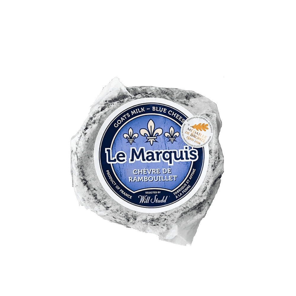 Le Marquis Chèvre de Rambouillet Bleu is a pure goat milk chèvre, is hand made on a farm not far from the famous castle of Rambouillet, which housed a model dairy built for Marie Antoinette during the reign of Louis XVI.